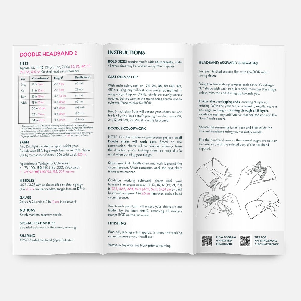 The BASE DOODLE HEADBAND 2 is the perfect everyday accessory! It's a quick knit, and has just enough space to highlight a few of your favorite Doodle colorwork charts! It's also a classic when knit in a single color or stripes - it's a great blank canvas for however you want to knit it!