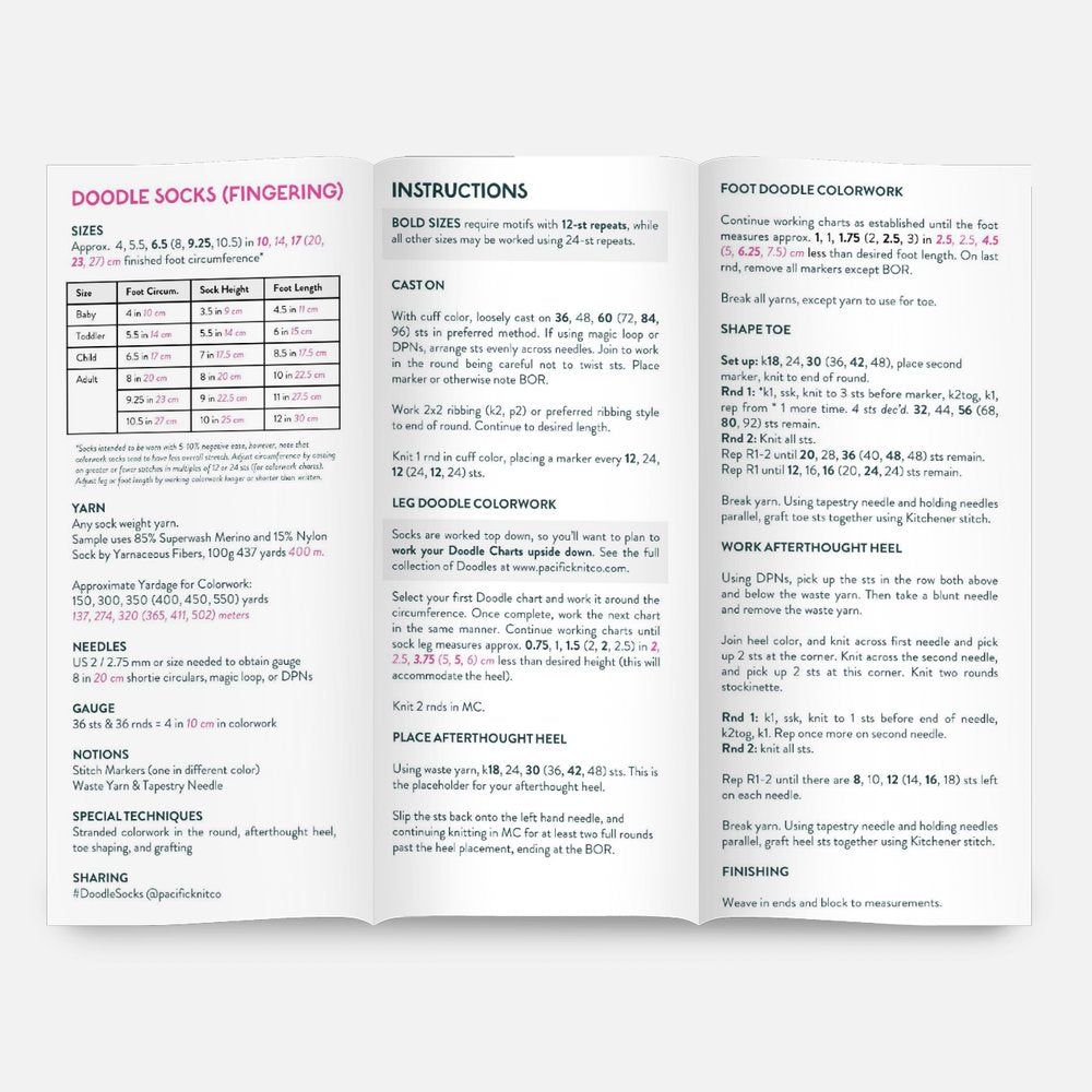 The DOODLE SOCKS (FINGERING) are your new go-to sock recipe! Try full colorwork socks, decorate the leg, or just add a splash of colorwork along the cuff. Play with different ribbing, heels, and toes.