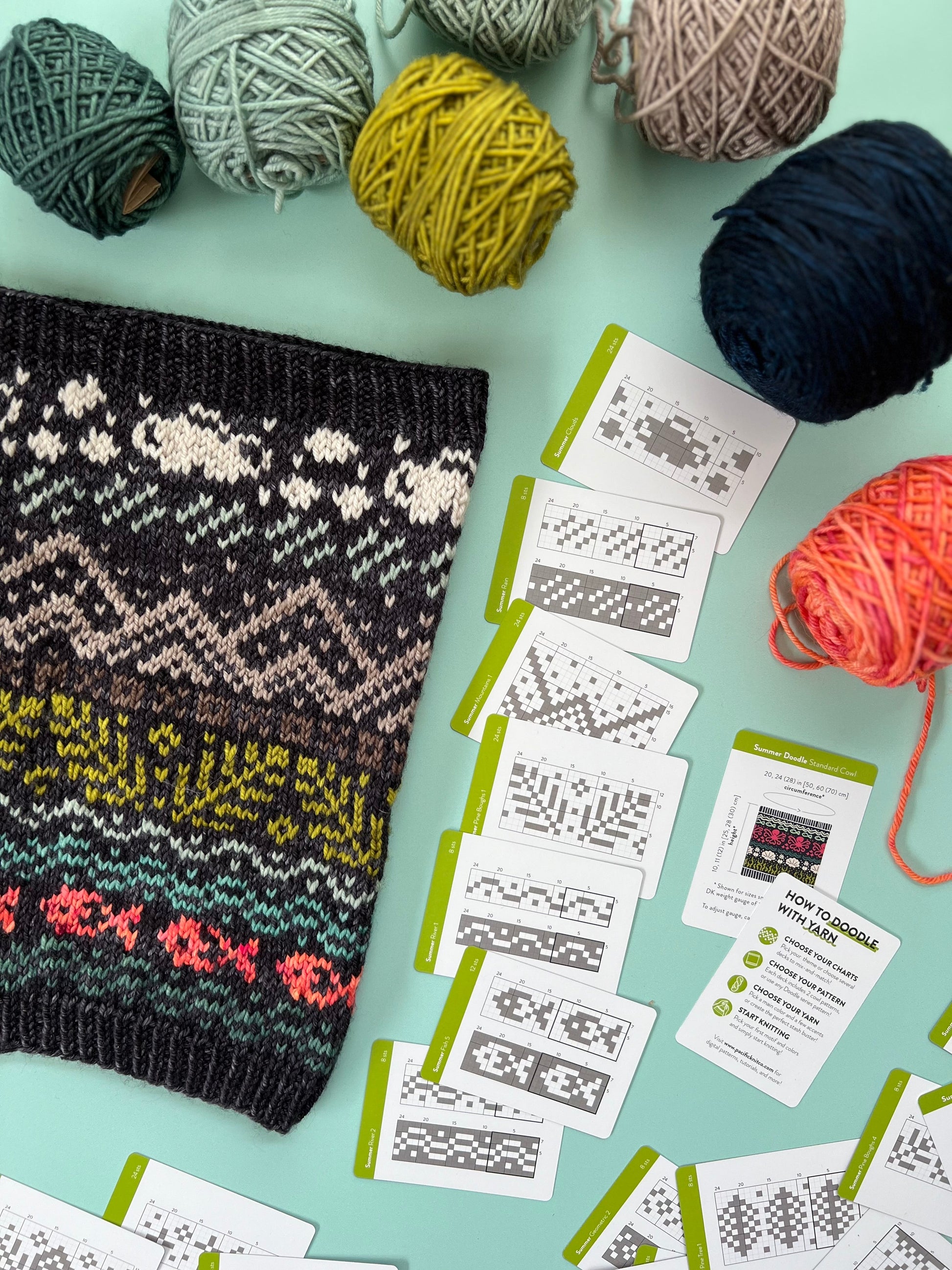 Doodle Card Decks are the ultimate way to inspire creative colorwork! Use these flexible mix-and-match chart cards to visually re-arrange and design the perfect colorwork pattern from start to finish.